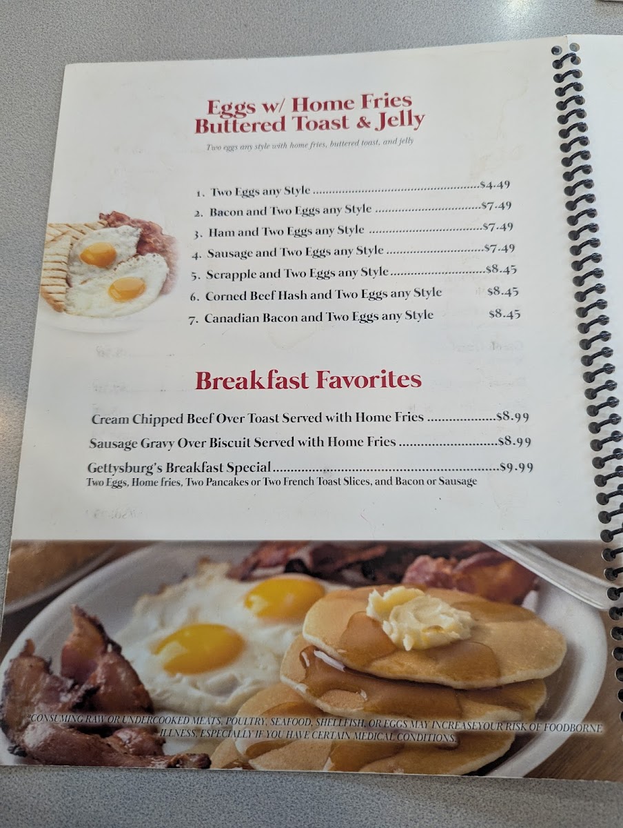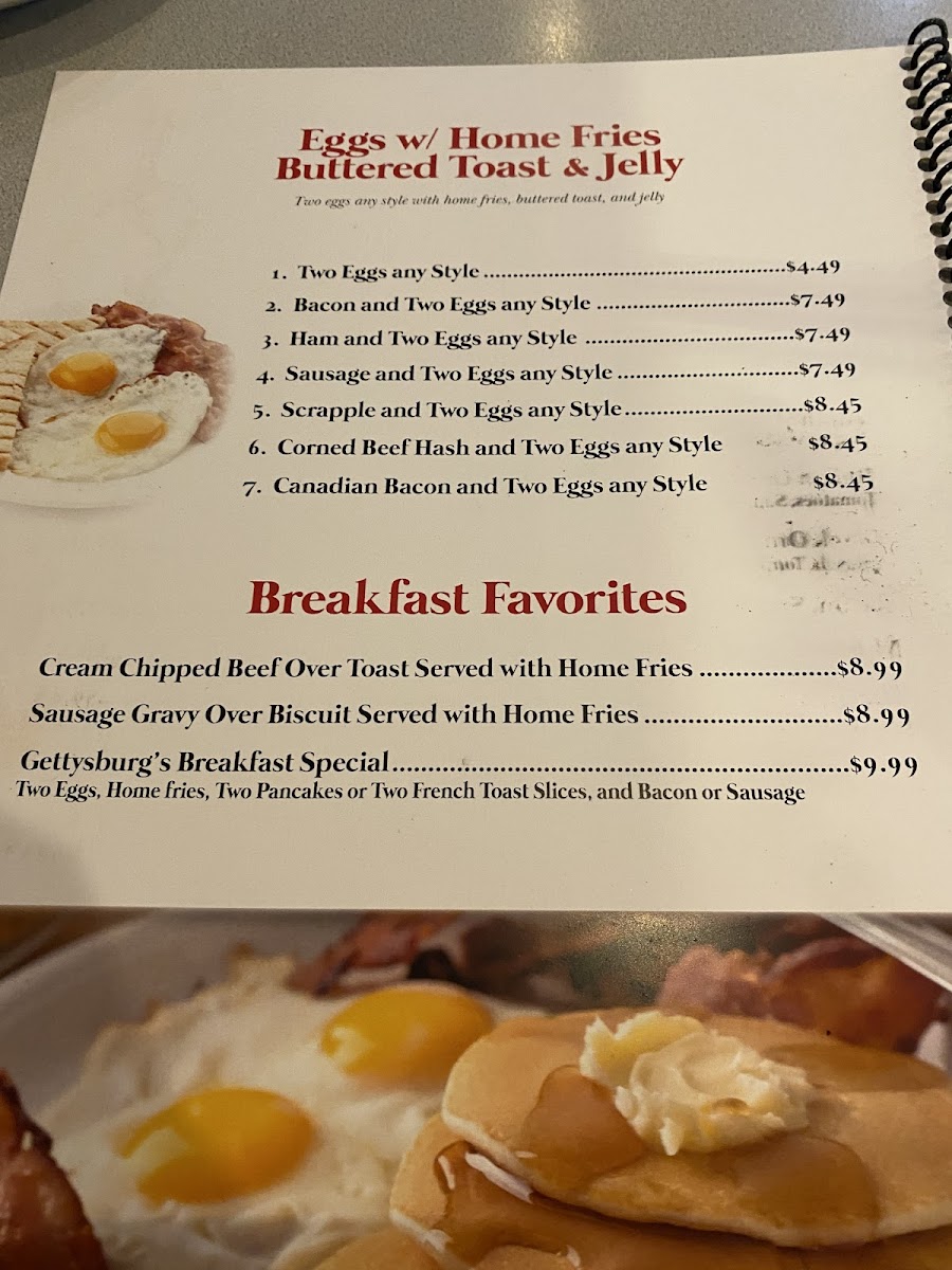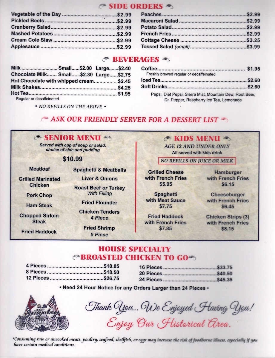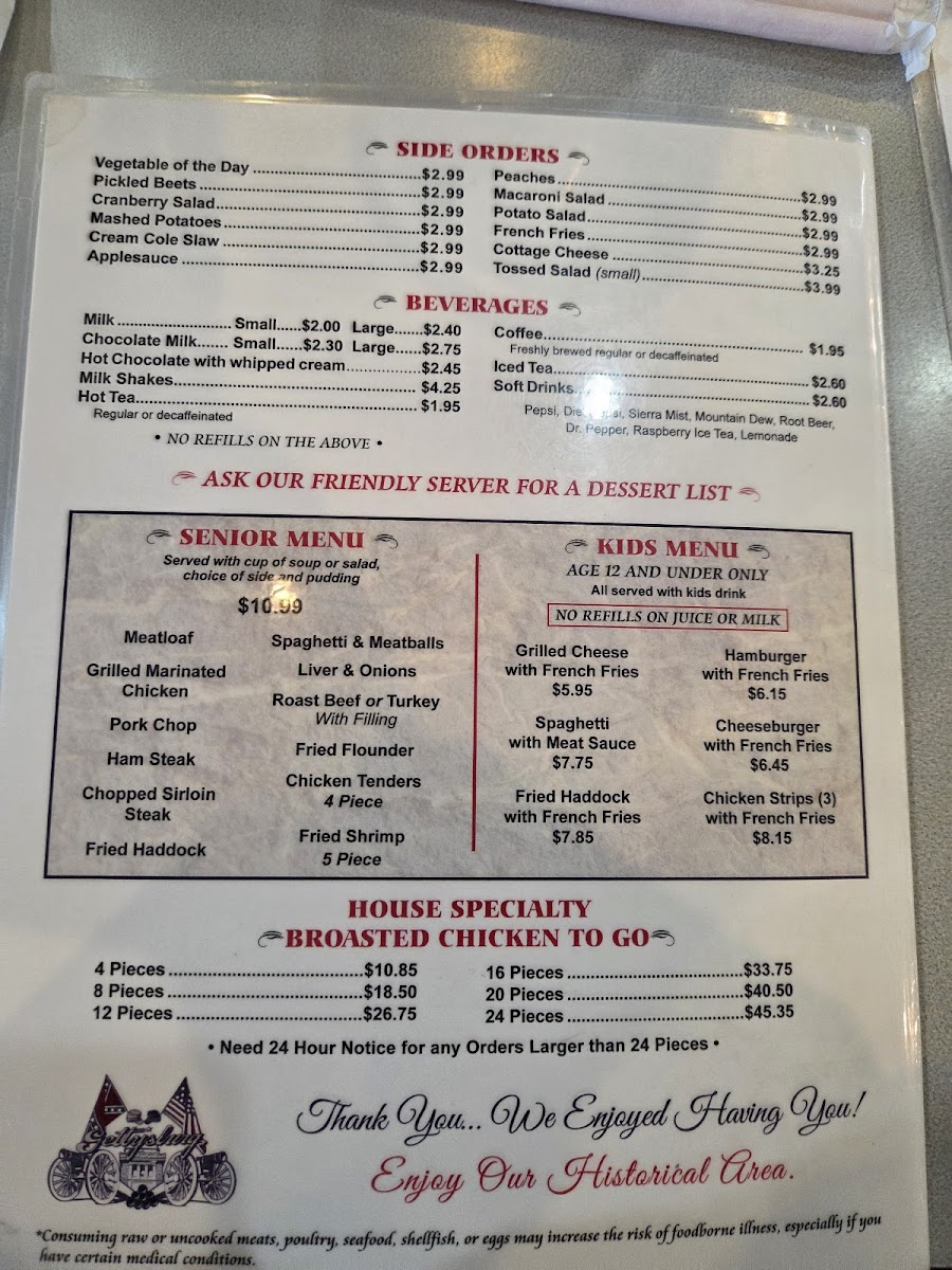 Gettysburg Family Restaurant Menu